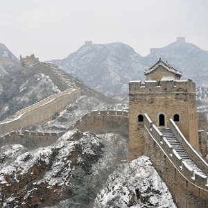 這是2月23日拍攝的金山嶺長城雪景。受冷空氣影響,河北省承德市灤平縣當日出現降雪天氣。雪后的金山嶺長城銀裝素裹,美如畫卷。新華社發(王立群 攝)