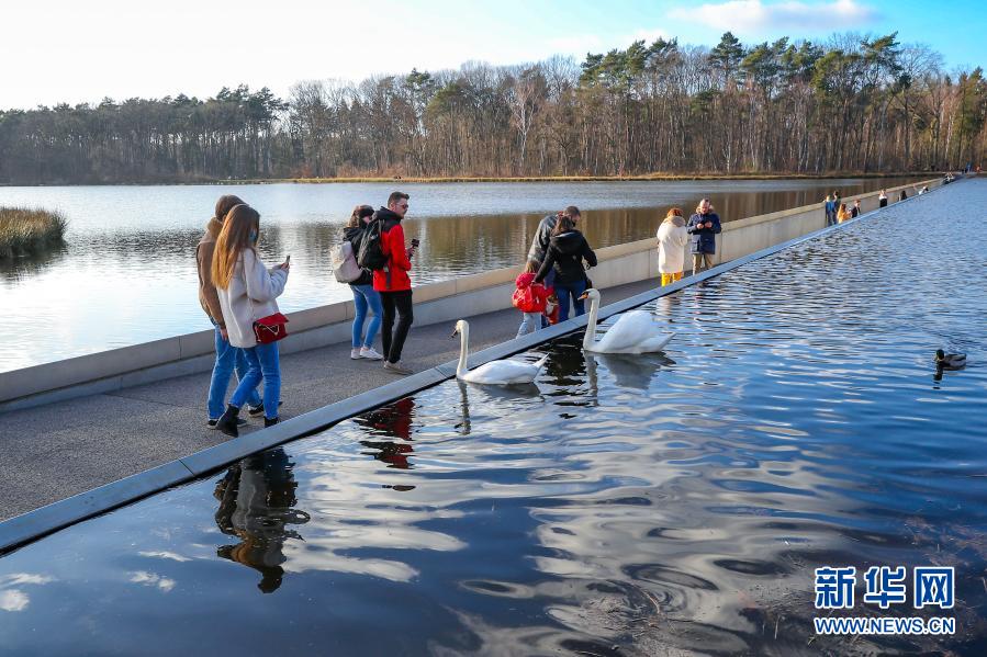 2月27日,人們在比利時小鎮波克萊克附近的“水中通道”中前行。