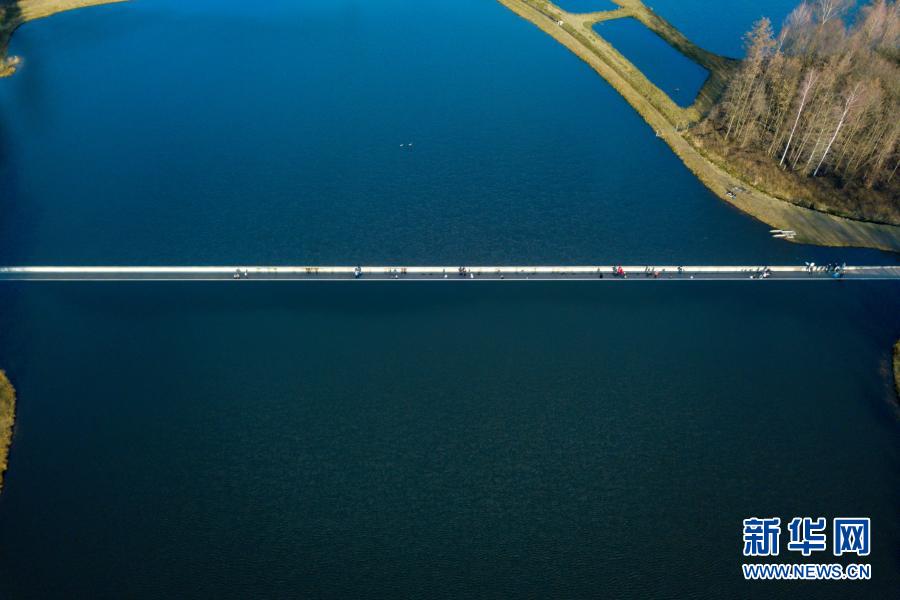 2月27日,人們在比利時小鎮波克萊克附近的“水中通道”中前行(無人機照片)。