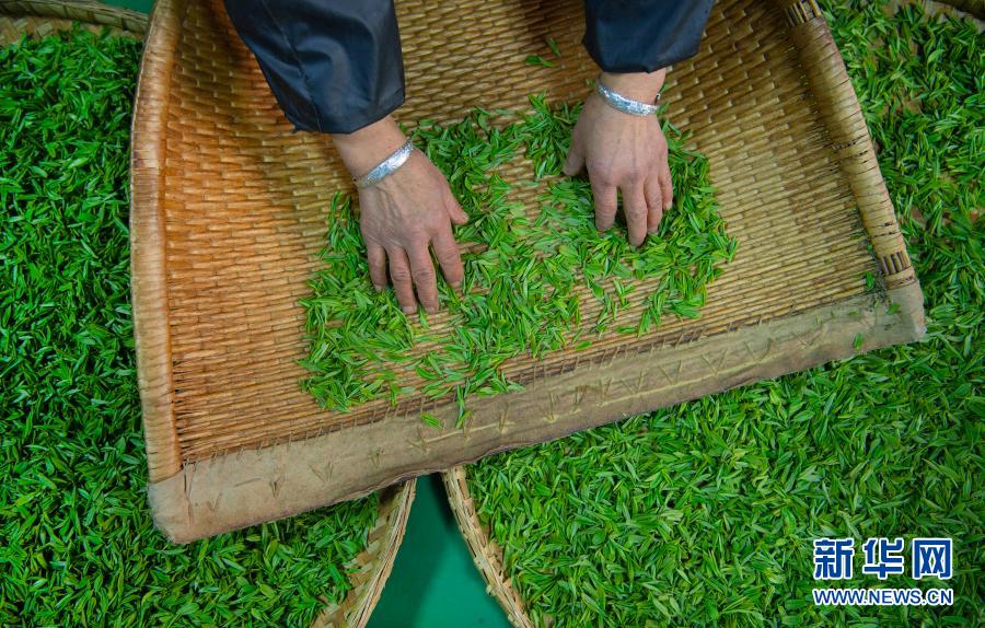 3月4日,安康市漢濱區(qū)流水鎮(zhèn)剛子茶葉專(zhuān)業(yè)合作社的社員在篩選采摘的新茶。新華社記者 陶明 攝