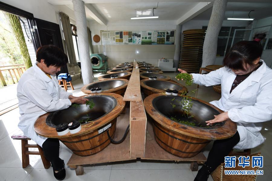 3月12日,在杭州市西湖風景名勝區滿覺隴村的中國茶葉博物館滿覺隴炒茶中心內,茶農在手工炒制西湖龍井茶。