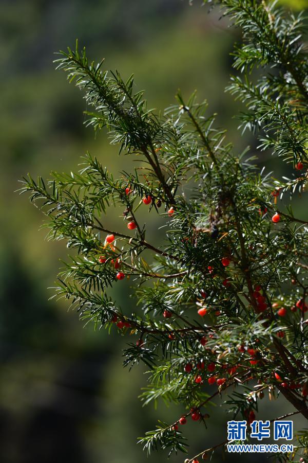 這是科研人員在西藏定日縣絨轄溝發現的密葉紅豆杉(2020年10月27日攝)。