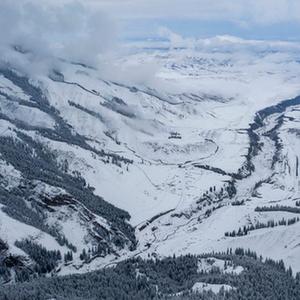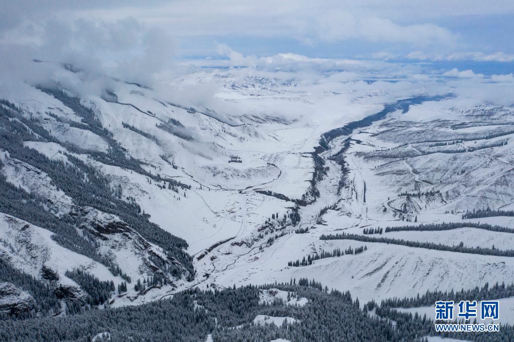 當(dāng)日,一場春雪過后,新疆沙灣市南部的天山山脈一片銀裝素裹。蒼山覆雪、云霧繚繞,如同一幅幅水墨畫般動人。