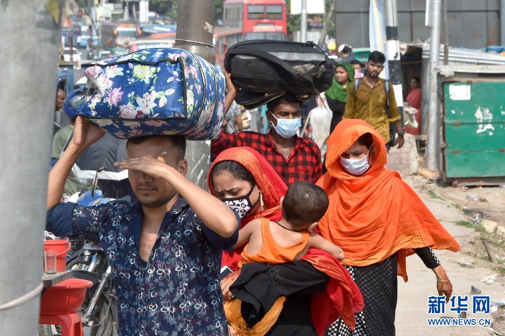 5月17日,人們攜帶行李從各地返回孟加拉國首都達卡。