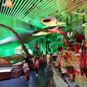 5月18日,參觀者在上海自然博物館生命長河展區參觀。
