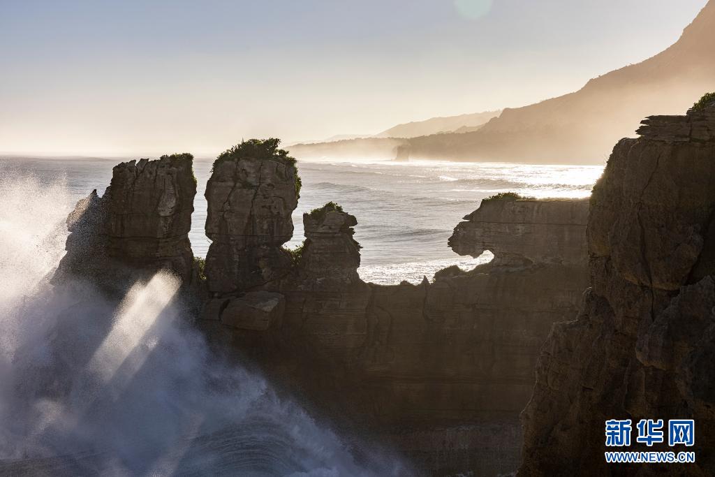 這是5月25日在新西蘭普納凱基拍攝的薄餅巖。