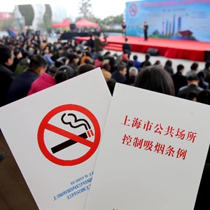 新版《上海市公共場所控制吸煙條例》實施主題宣傳活動在上海世博源大舞臺舉行(2017年3月1日攝)。新華社記者 劉穎 攝