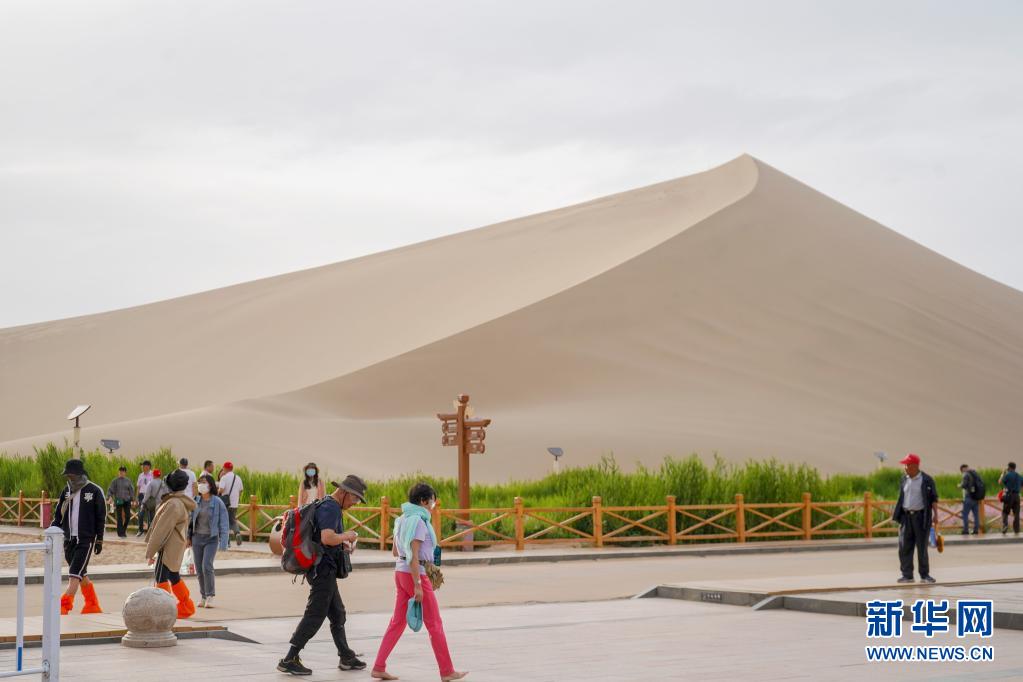時下,位于甘肅省敦煌市的月牙泉碧波蕩漾,吸引不少游客前來觀光。