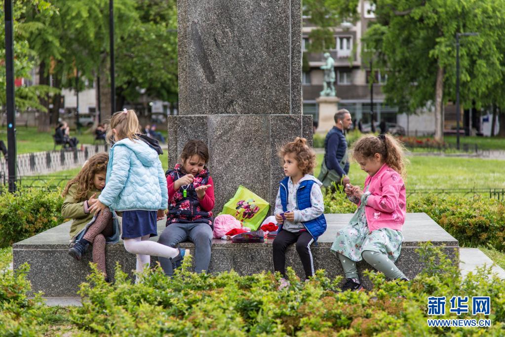 5月31日,孩子們在塞爾維亞貝爾格萊德的公園里玩耍。