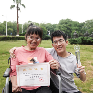 今年24歲的趙建軍是南昌航空大學軟件學院研一學生。2018年,趙建軍的父母不幸遭遇車禍,母親幾乎喪失自理能力,父親在身體逐漸好轉后開始外出務工,為了既能完成學業又能照顧臥病在床的母親,趙建軍選擇帶著母親一起走進校園。刷牙洗臉、捏腳按摩、康復訓練、校園散心……平日里,除了學習,趙建軍幾乎將所有時間都用來陪伴母親。