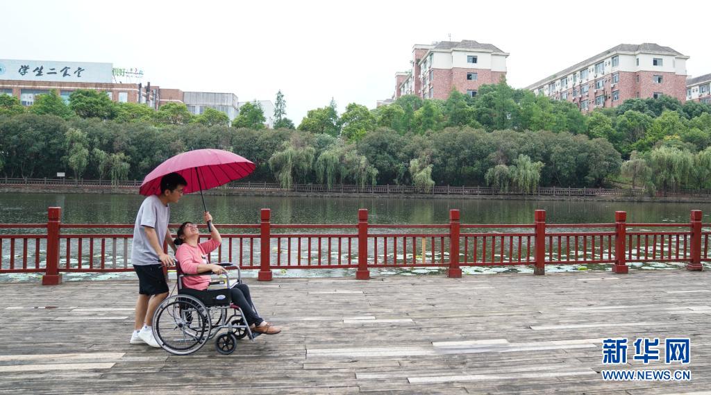 6月2日,趙建軍和母親在校園內(nèi)散心。新華社記者胡晨歡攝
