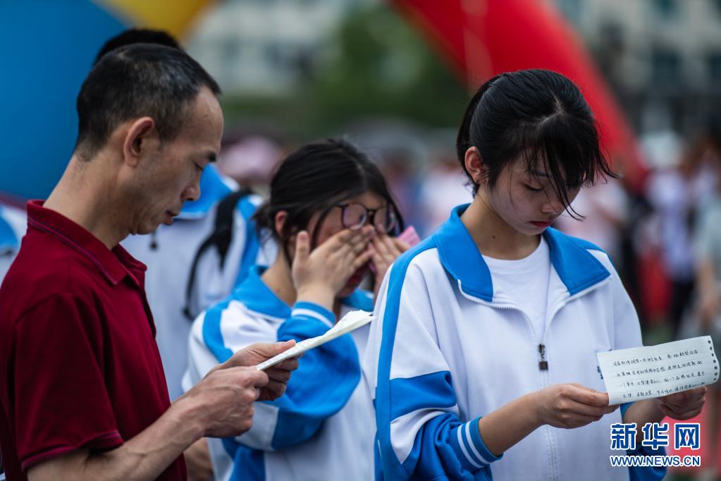 6月9日,烏當中學高三學生和家長互讀家書。
