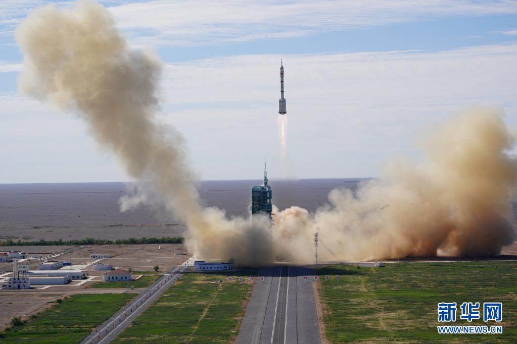 6月17日,搭載著神舟十二號(hào)載人飛船的長(zhǎng)征二號(hào)F遙十二運(yùn)載火箭在酒泉衛(wèi)星發(fā)射中心點(diǎn)火升空。新華社記者 李剛 攝