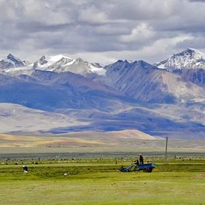 夏日里,西藏拉薩市當雄縣境內的天然草場綠草如茵,景色優美。