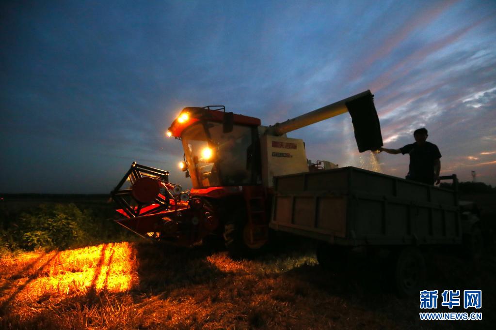 6月19日,山東省青島市即墨區段泊嵐鎮葉家宅科村的農民在麥田內作業。