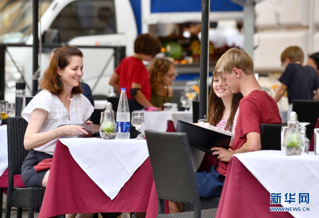 6月24日,人們在意大利羅馬一家餐館的戶外區域消費。