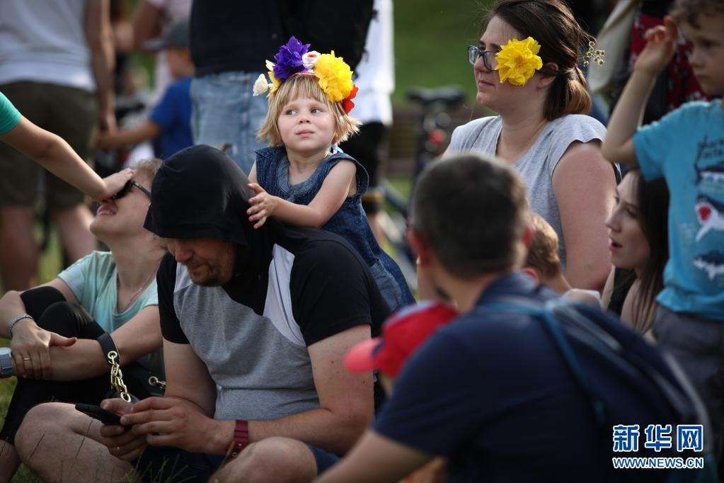 6月26日,兒童佩戴花冠在波蘭首都華沙參加夏日文化娛樂(lè)活動(dòng)。
