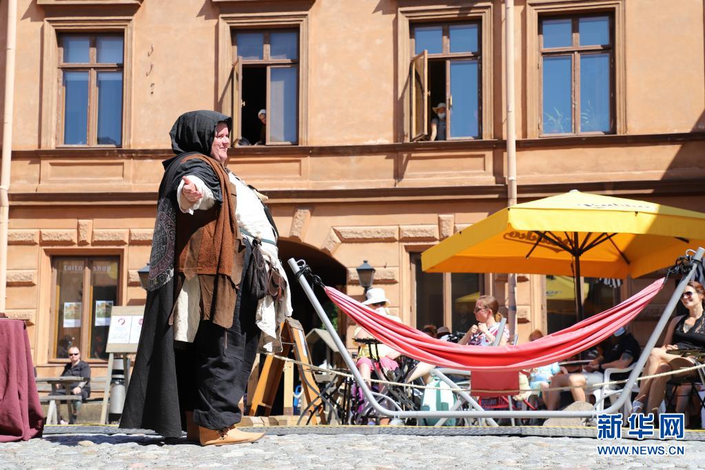芬蘭古城圖爾庫(kù)于7月1日至4日舉行“中世紀(jì)市集”活動(dòng)。人們身著中世紀(jì)風(fēng)格服裝售賣(mài)貨品,表演短劇、馬戲和歌舞。