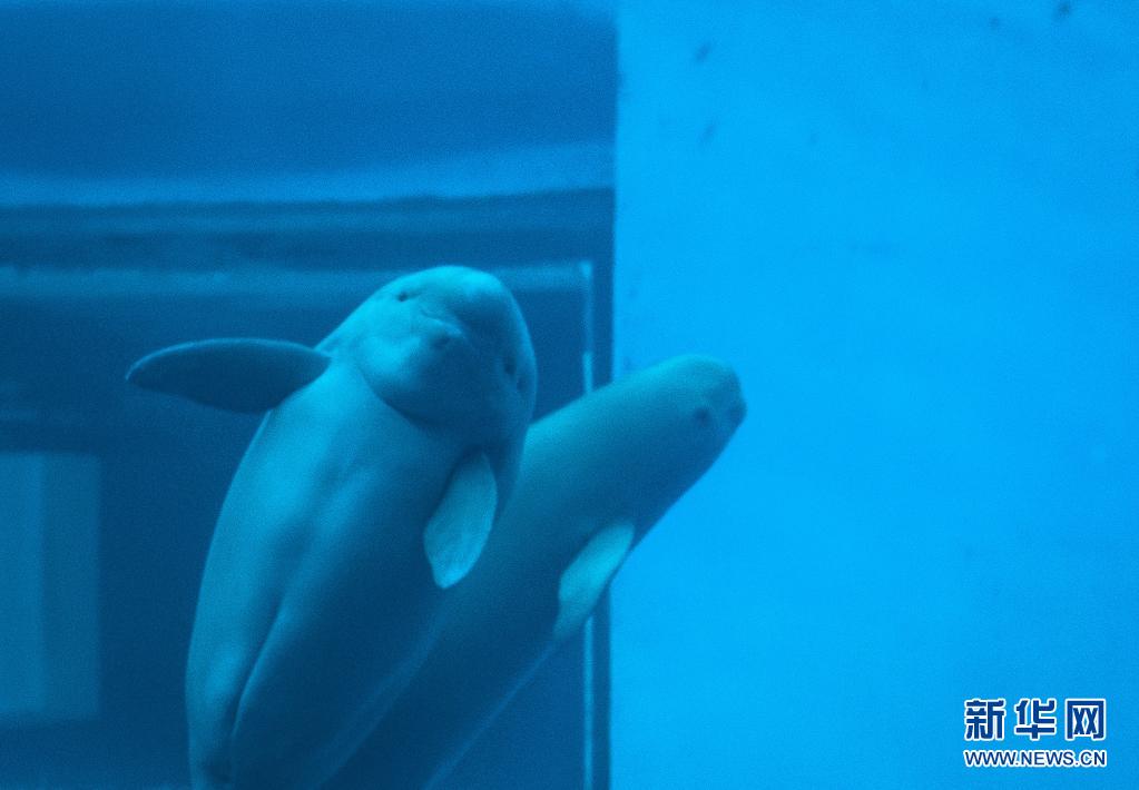 7月5日,江豚媽媽洋洋和小江豚YYC在水中游動。新華社記者肖藝九攝