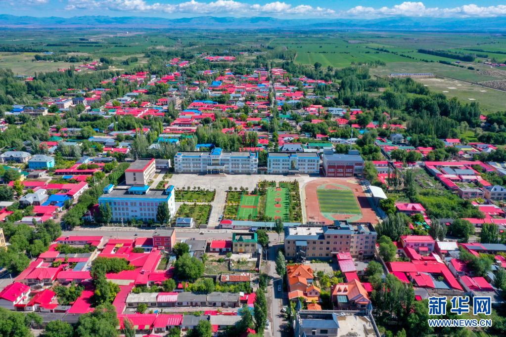 這是杜寶柱任教的新疆塔城地區(qū)塔城市第二小學(xué)(6月12日攝,無人機(jī)照片)。