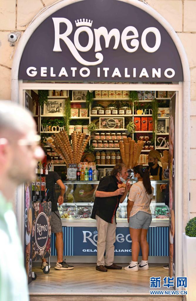 7月11日,人們在意大利羅馬的一家冰淇淋店內(nèi)消費。