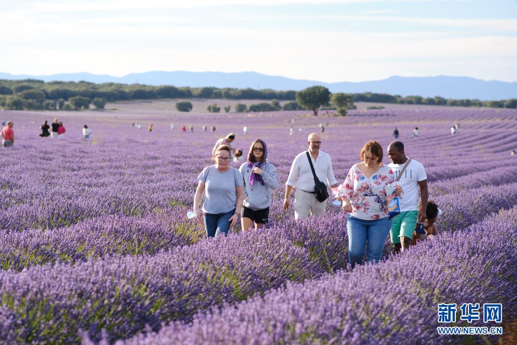 7月13日,人們在西班牙卡斯蒂利亞-拉曼查自治區(qū)布里韋加的薰衣草田游玩。