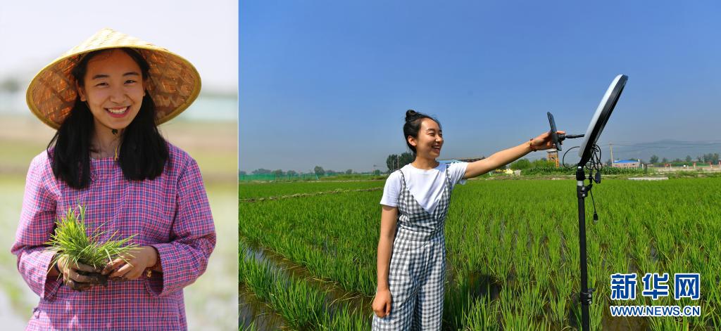 拼版照片:左圖為程玉嬌在太原市晉源區(qū)三家村水稻田里;右圖為程玉嬌在水稻田里進(jìn)行直播(7月9日攝)。今年24歲的程玉嬌2019年留學(xué)回國(guó)后,選擇了返鄉(xiāng)創(chuàng)業(yè)發(fā)展稻魚(yú)菜綜合種養(yǎng)農(nóng)業(yè)。晉源區(qū)三家村出產(chǎn)的大米遠(yuǎn)近聞名,程玉嬌在社交平臺(tái)上開(kāi)通了雙語(yǔ)直播,在科普水稻知識(shí)的同時(shí)拓展銷(xiāo)售渠道,不僅生意做得風(fēng)風(fēng)火火,自己也變成了小有名氣的“網(wǎng)紅”。