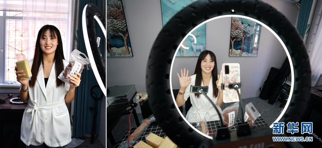拼版照片:左圖為何雪艷在山西省平順縣龍鎮(zhèn)村電商服務(wù)中心直播間里;右圖為何雪艷通過網(wǎng)絡(luò)直播介紹農(nóng)產(chǎn)品(7月8日攝)。今年25歲的何雪艷是龍鎮(zhèn)村電商服務(wù)中心的網(wǎng)絡(luò)主播,從一個“電商小白”變身網(wǎng)絡(luò)主播不到一年時間,何雪艷已成為龍鎮(zhèn)村帶貨能力頗強的“網(wǎng)紅”。從最初直播時結(jié)結(jié)巴巴,到如今精準(zhǔn)掌握網(wǎng)絡(luò)語言,何雪艷和村里其他主播變得越來越熟練。
