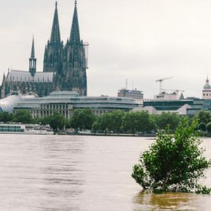 這是7月15日在德國西部城市科隆拍攝的水位上漲的萊茵河。