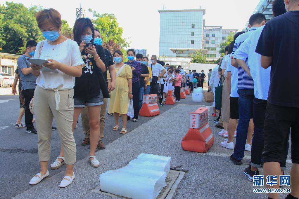 江蘇省南京市于7月21日開始對全市常住人口、外來人員開展全員核酸檢測。目前正值盛夏,氣溫較高,在南京市第一醫(yī)院河西院區(qū)核酸檢測點(diǎn),工作人員專門為排隊(duì)等候的市民準(zhǔn)備了冰塊降溫。