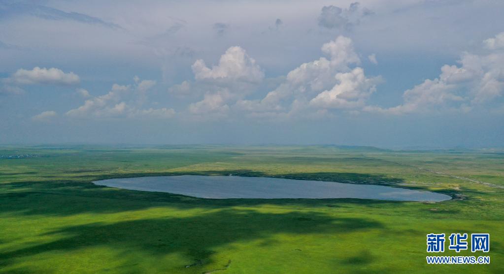這是陳巴爾虎草原風(fēng)光(7月22日攝,無人機(jī)照片)。