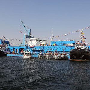 當(dāng)日,埃及蘇伊士運河管理局在伊斯梅利亞舉行儀式,迎接最新購入的“侯賽因·坦塔維”號大型絞吸式挖泥船。