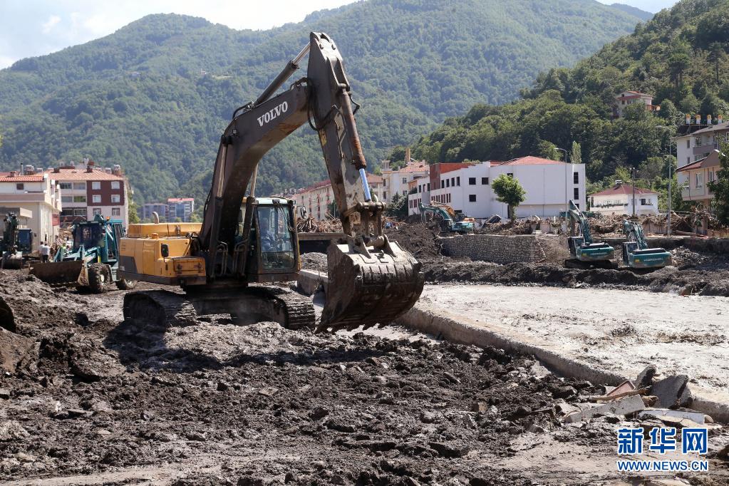 這是8月14日在土耳其卡斯塔莫努省阿巴納拍攝的洪水過后的景象。