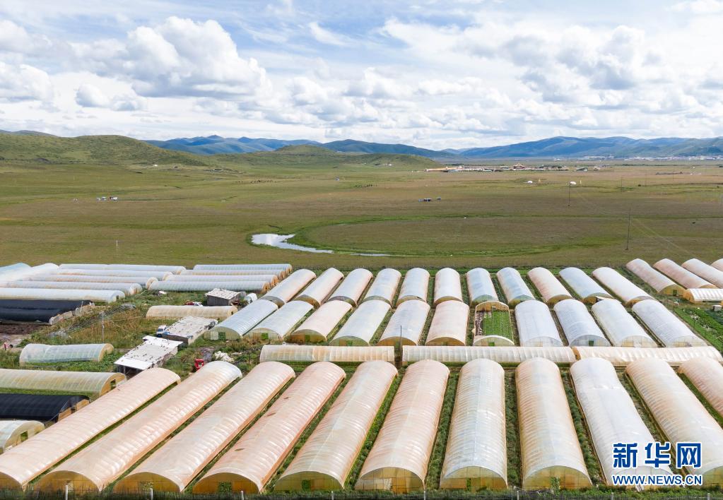 這是四川省阿壩藏族羌族自治州紅原縣邛溪鎮(zhèn)熱坤村的蔬菜大棚(8月13日攝,無人機照片)。