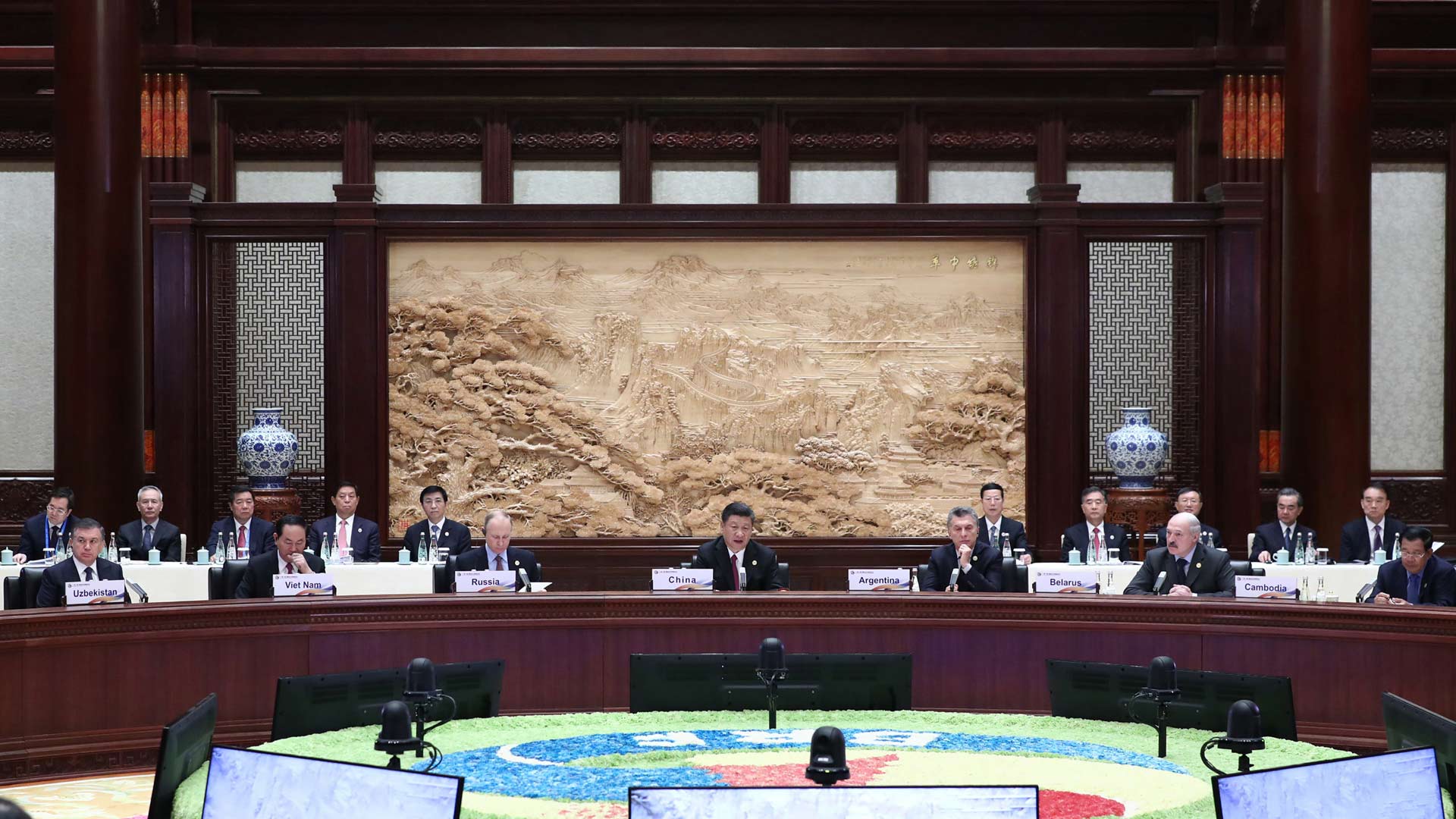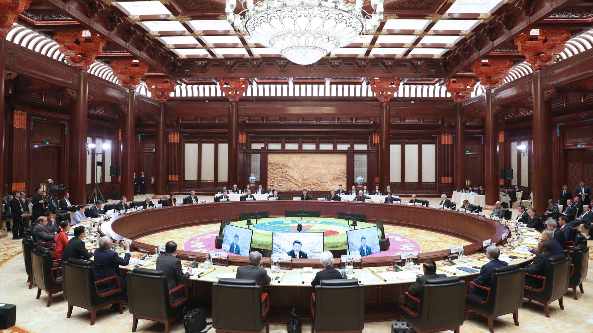5月15日,“一帶一路”國際合作高峰論壇在北京雁棲湖國際會議中心舉行圓桌峰會,國家主席習(xí)近平主持會議并致辭。新華社記者 馬占成 攝