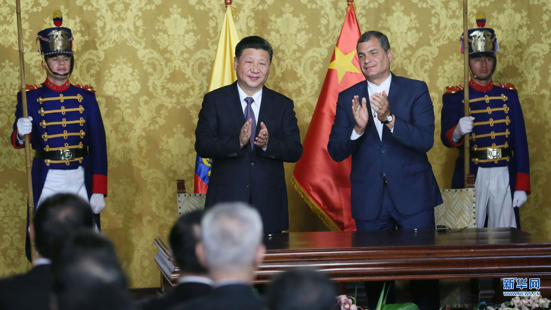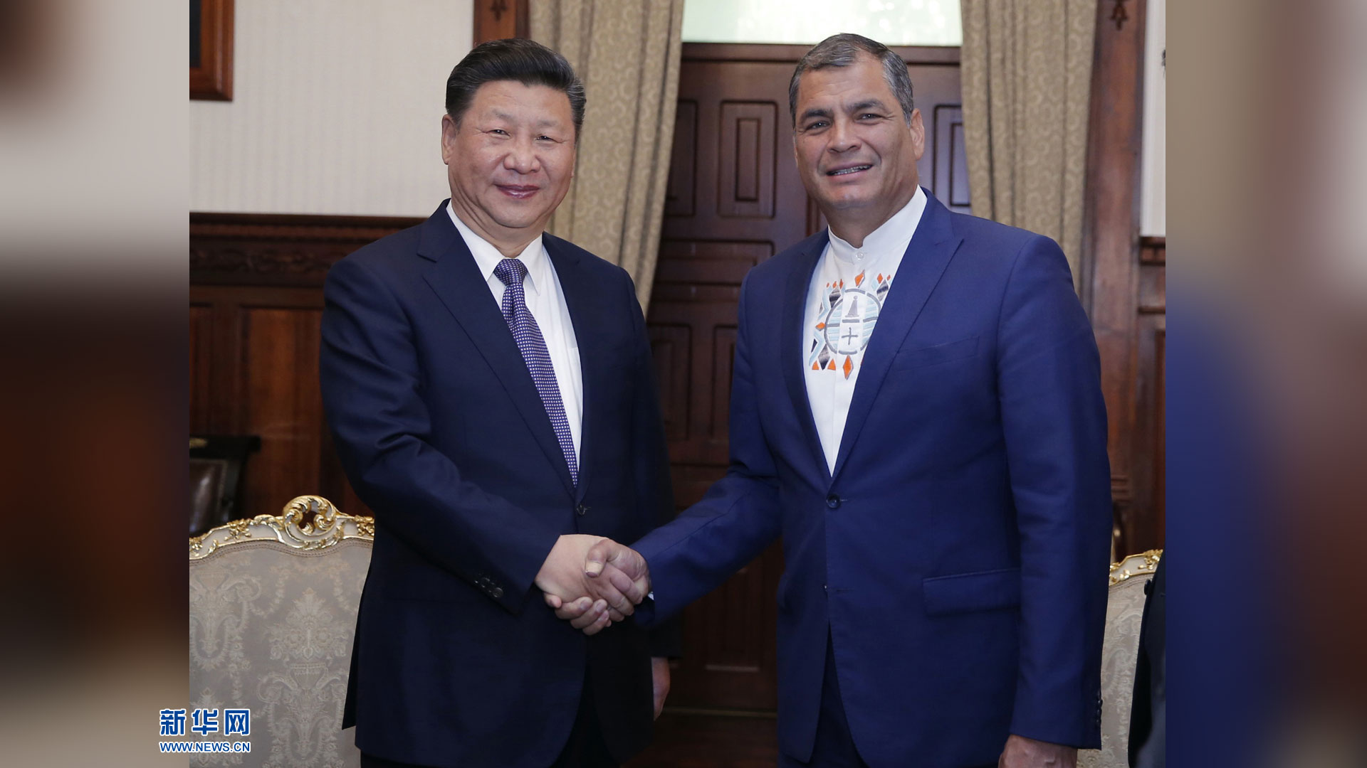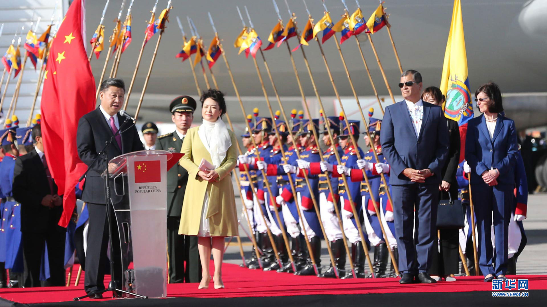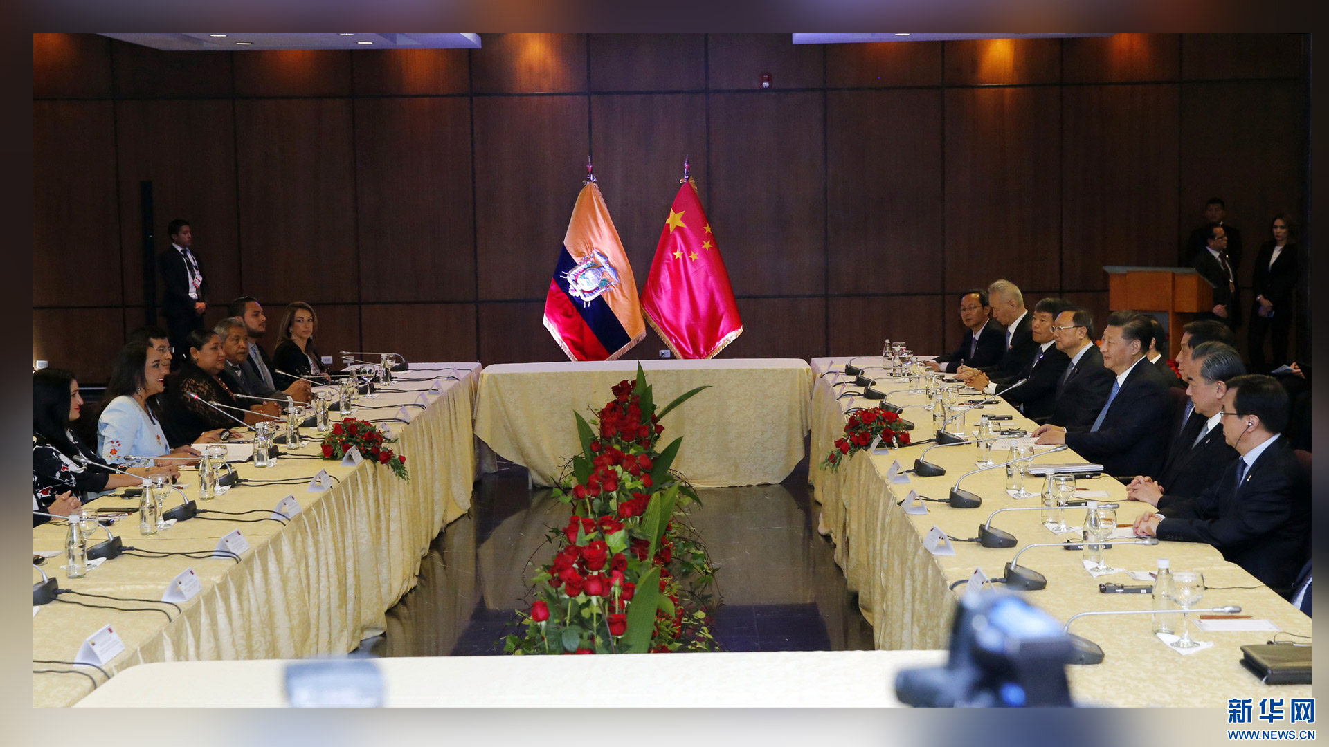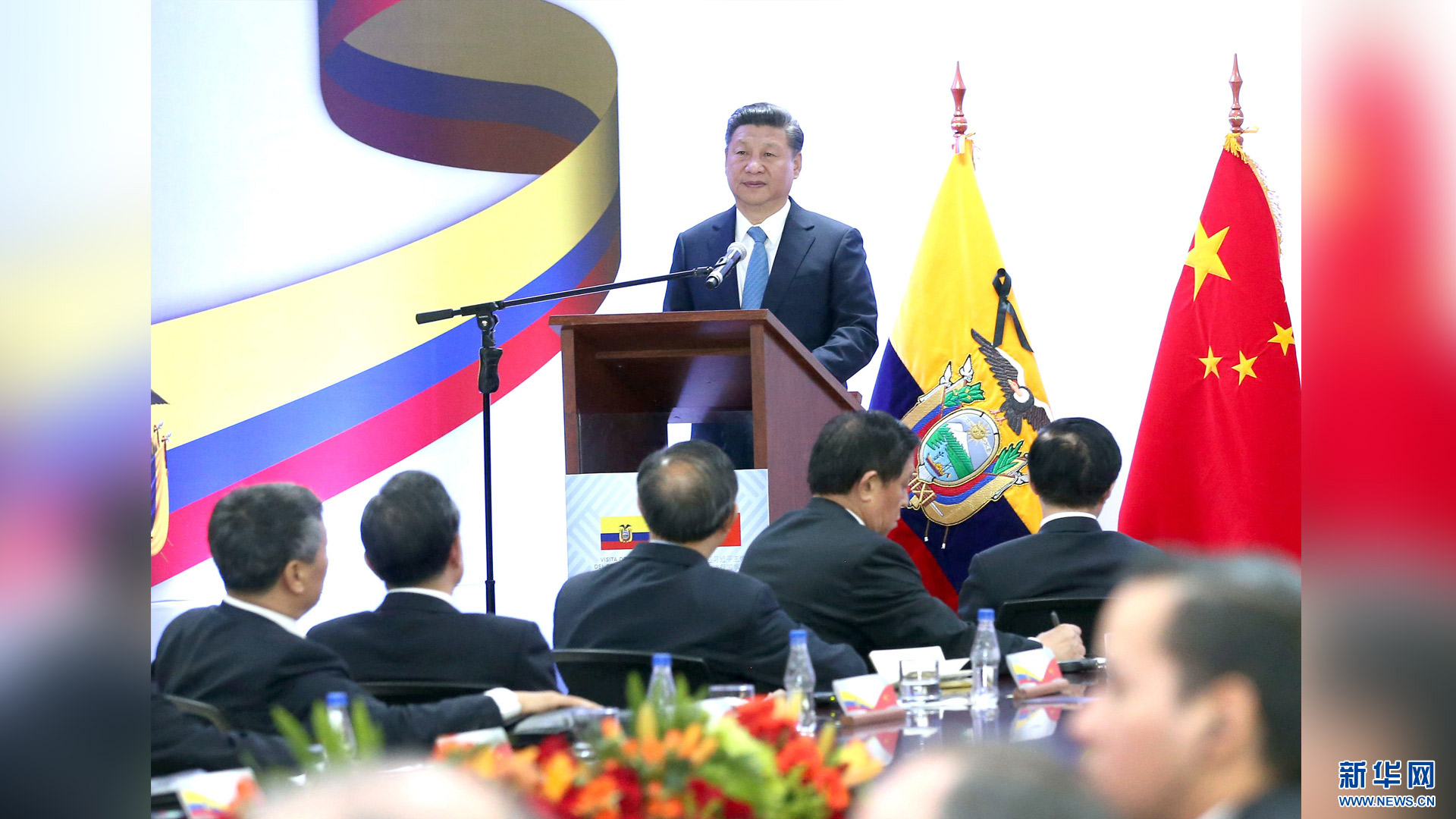 當(dāng)?shù)貢r間11月18日,國家主席習(xí)近平在基多同厄瓜多爾總統(tǒng)科雷亞共同出席中方援建的厄瓜多爾公共安全應(yīng)急指揮中心聯(lián)合實驗室揭牌儀式,喬內(nèi)醫(yī)院奠基、科卡科多-辛克雷水電站竣工發(fā)電視頻連線活動。這是習(xí)近平通過視頻連線向地震災(zāi)區(qū)波多維耶霍指揮中心當(dāng)?shù)貑T工致以親切問候,向地震災(zāi)害中獲救者表達(dá)慰問和祝福。新華社記者 蘭紅光 攝2016-11-19
