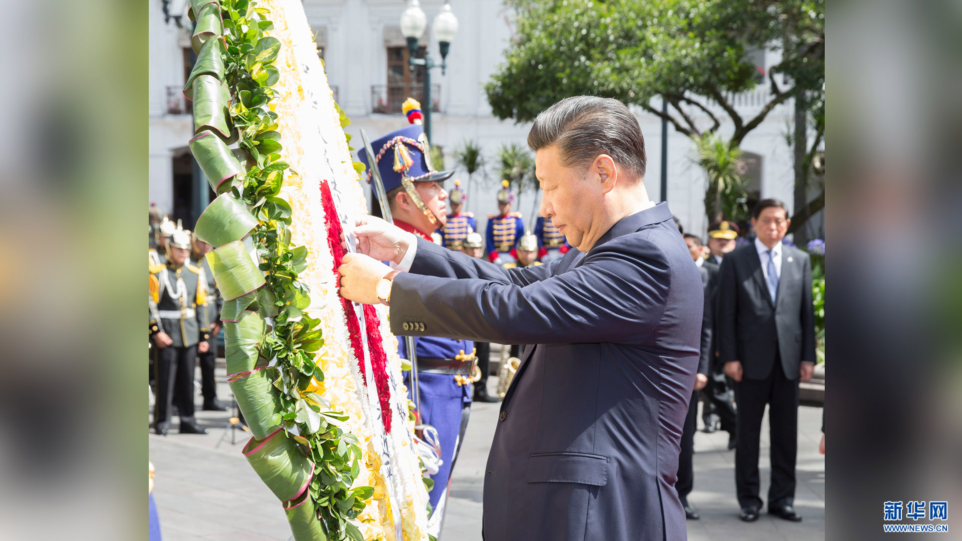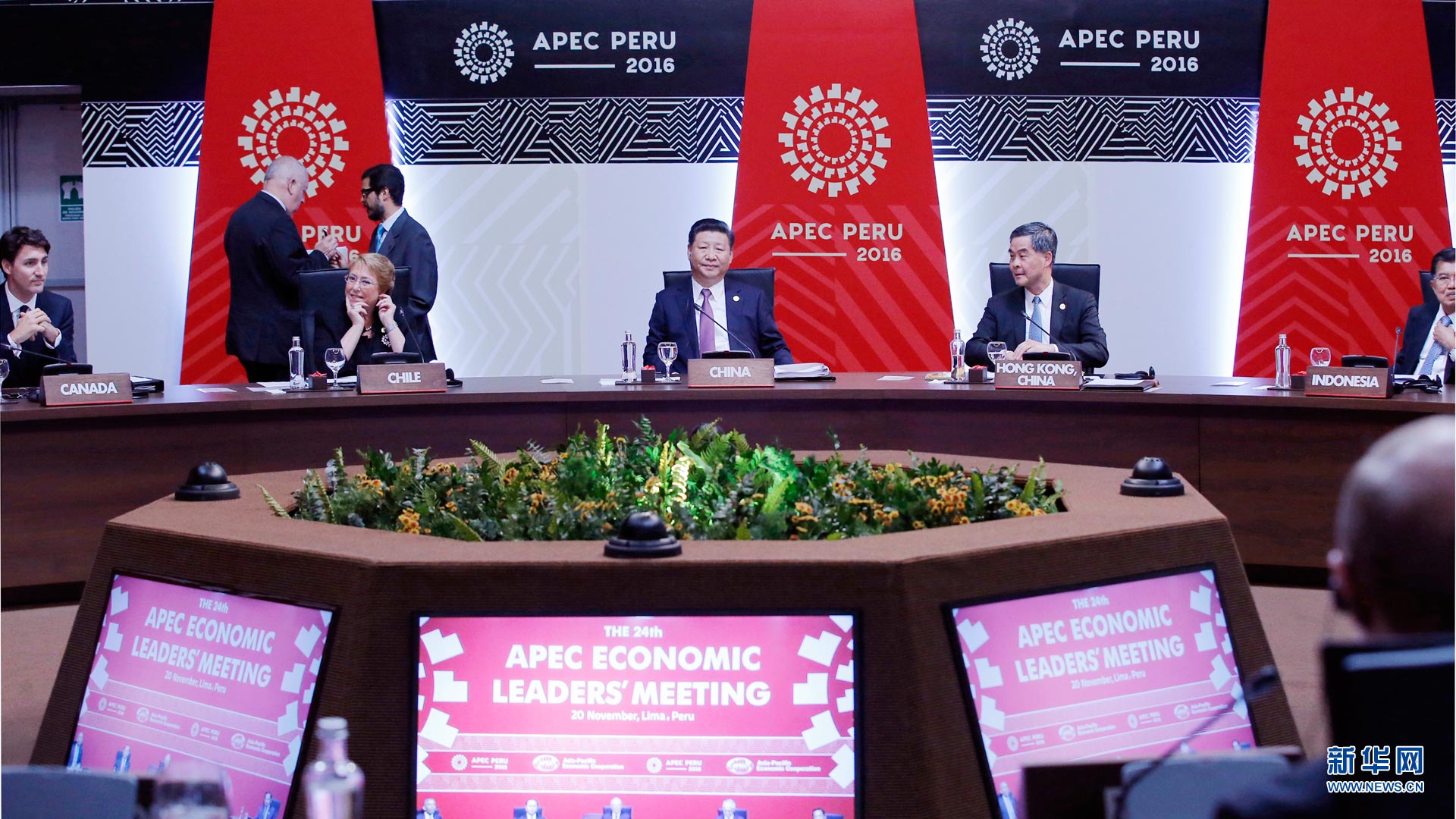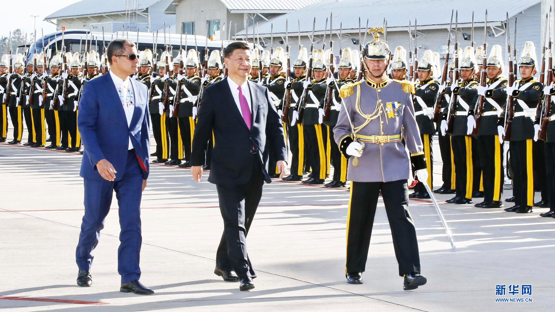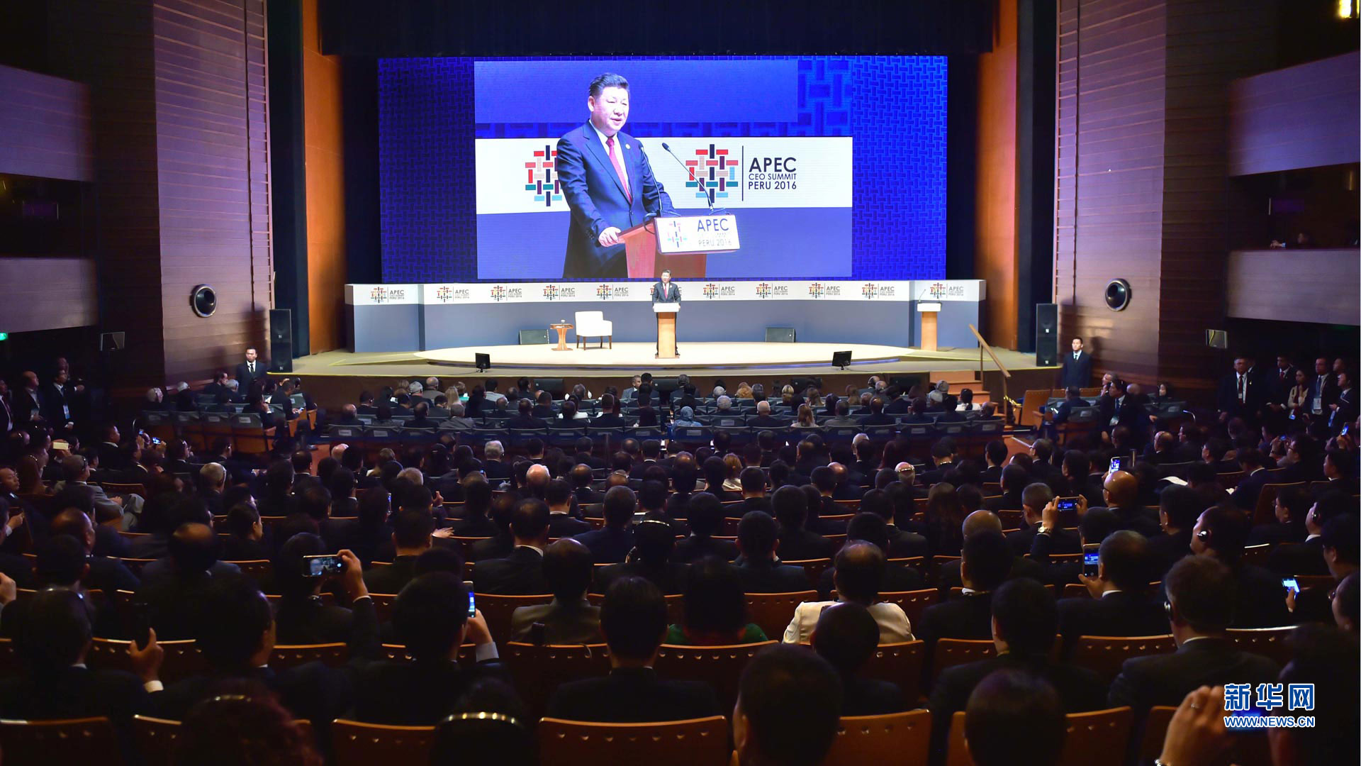 當(dāng)?shù)貢r間11月18日,國家主席習(xí)近平在基多同厄瓜多爾總統(tǒng)科雷亞共同出席中方援建的厄瓜多爾公共安全應(yīng)急指揮中心聯(lián)合實驗室揭牌儀式,喬內(nèi)醫(yī)院奠基、科卡科多-辛克雷水電站竣工發(fā)電視頻連線活動。這是習(xí)近平通過視頻連線向地震災(zāi)區(qū)波多維耶霍指揮中心當(dāng)?shù)貑T工致以親切問候,向地震災(zāi)害中獲救者表達(dá)慰問和祝福。新華社記者 蘭紅光 攝2016-11-19
