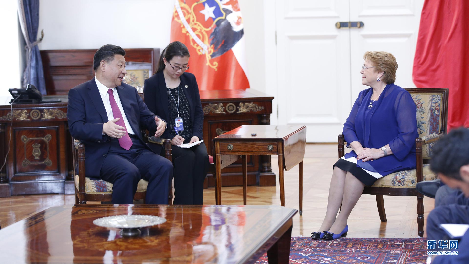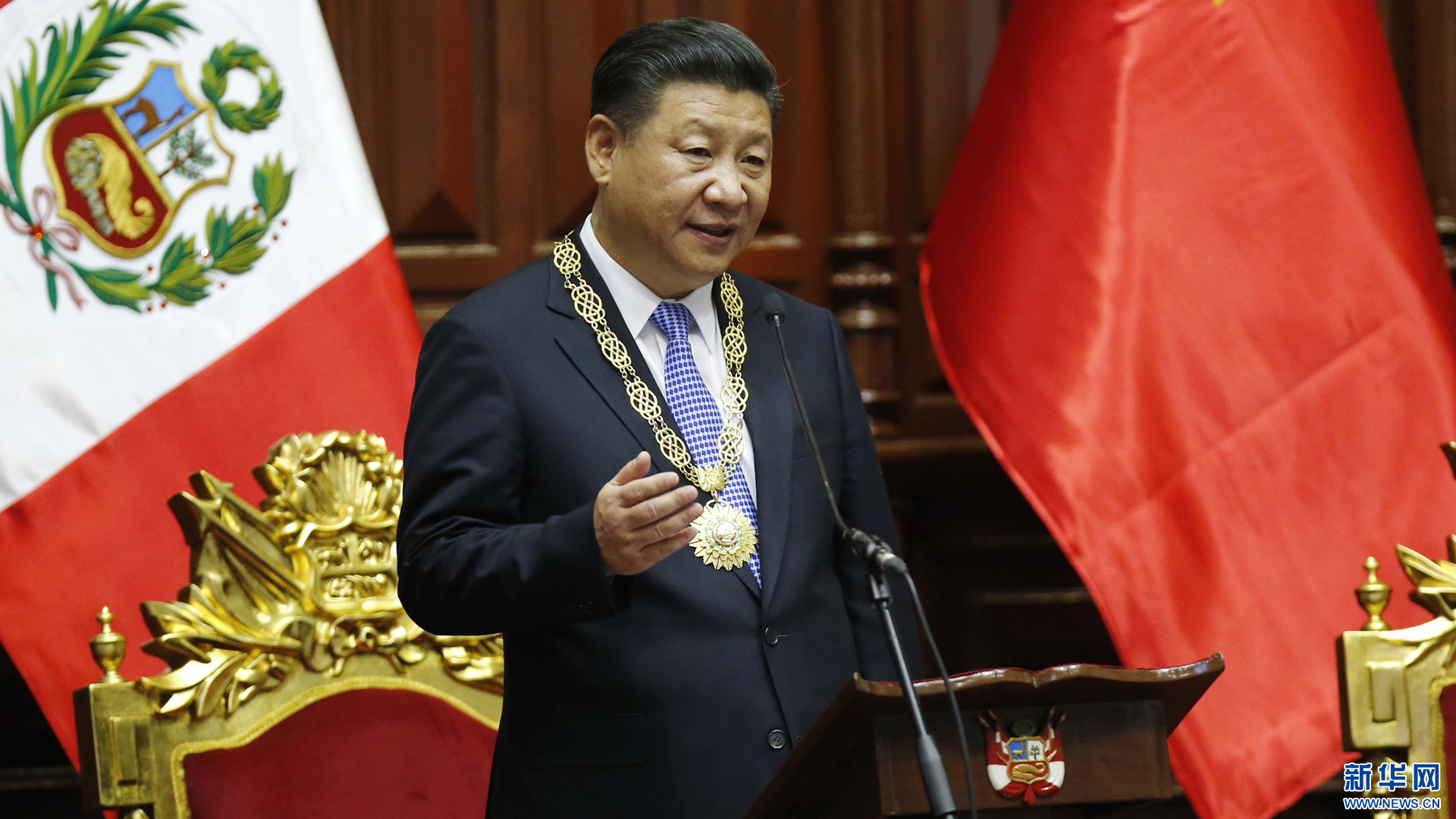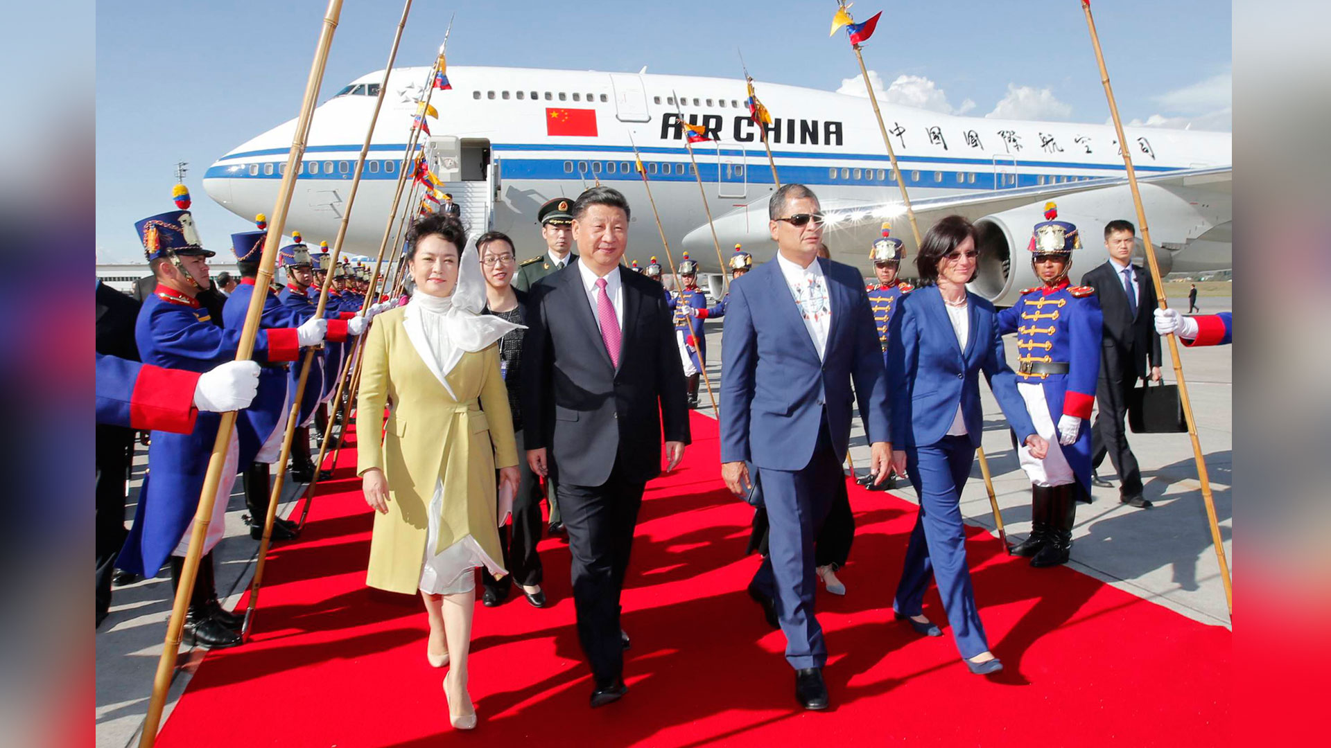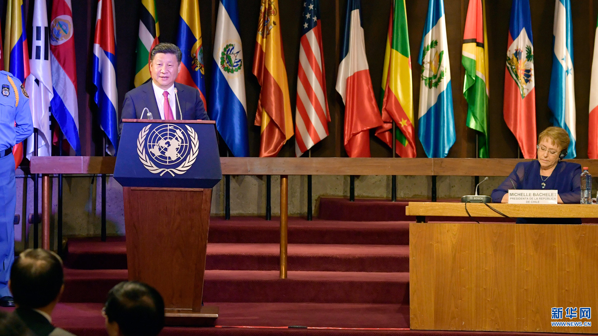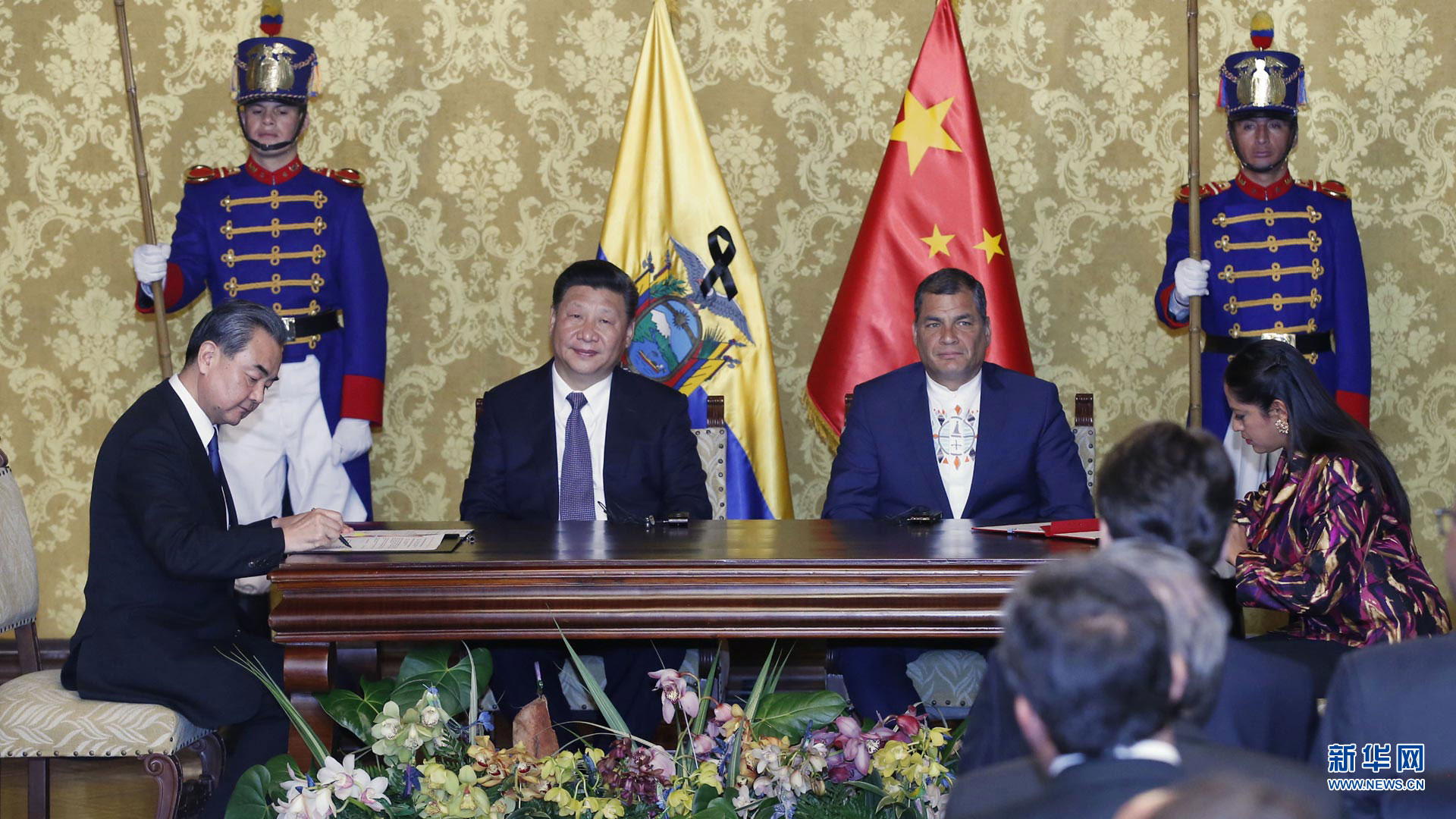 當(dāng)?shù)貢r間11月18日,國家主席習(xí)近平在基多同厄瓜多爾總統(tǒng)科雷亞共同出席中方援建的厄瓜多爾公共安全應(yīng)急指揮中心聯(lián)合實驗室揭牌儀式,喬內(nèi)醫(yī)院奠基、科卡科多-辛克雷水電站竣工發(fā)電視頻連線活動。這是習(xí)近平通過視頻連線向地震災(zāi)區(qū)波多維耶霍指揮中心當(dāng)?shù)貑T工致以親切問候,向地震災(zāi)害中獲救者表達(dá)慰問和祝福。新華社記者 蘭紅光 攝2016-11-19