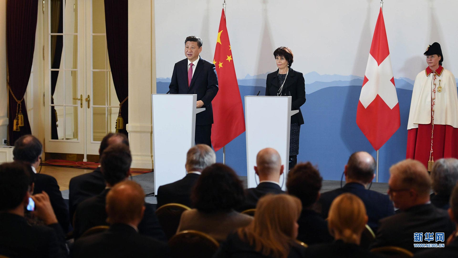 1月15日,國家主席習近平在伯爾尼出席瑞士聯邦委員會全體委員集體舉行的迎接儀式并致辭。 新華社記者謝環馳攝2017-01-16