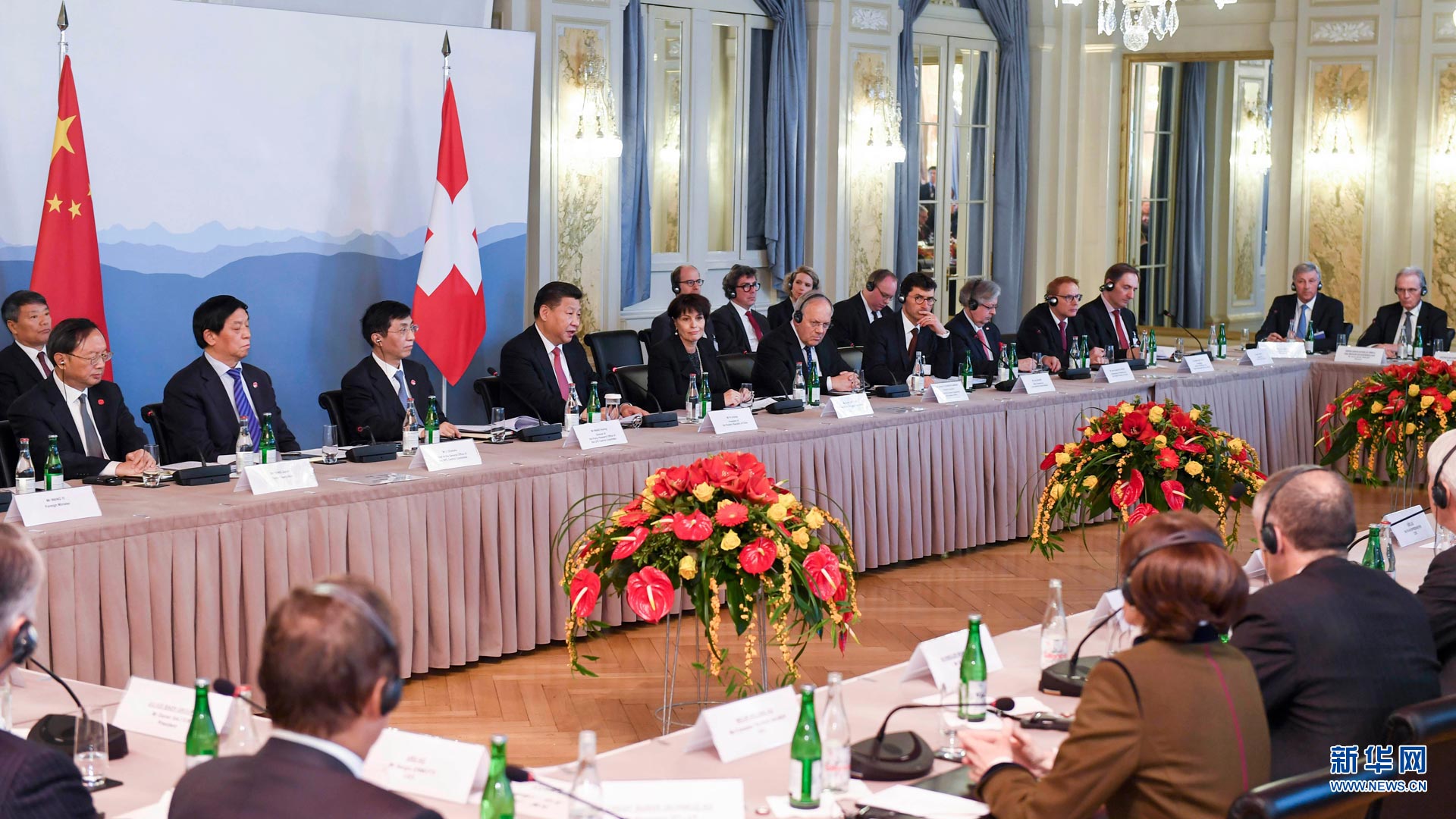 1月16日,國家主席習近平在伯爾尼會見瑞士聯邦國民院議長施塔爾和聯邦院議長比紹夫貝爾格。 新華社記者 謝環馳 攝2017-01-17