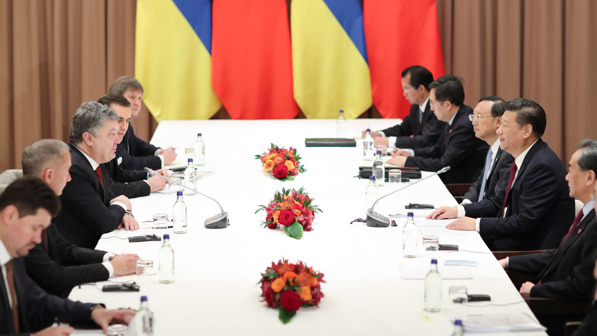 1月17日,國家主席習近平在瑞士達沃斯會見烏克蘭總統波羅申科。新華社記者 丁林 攝2017-01-18