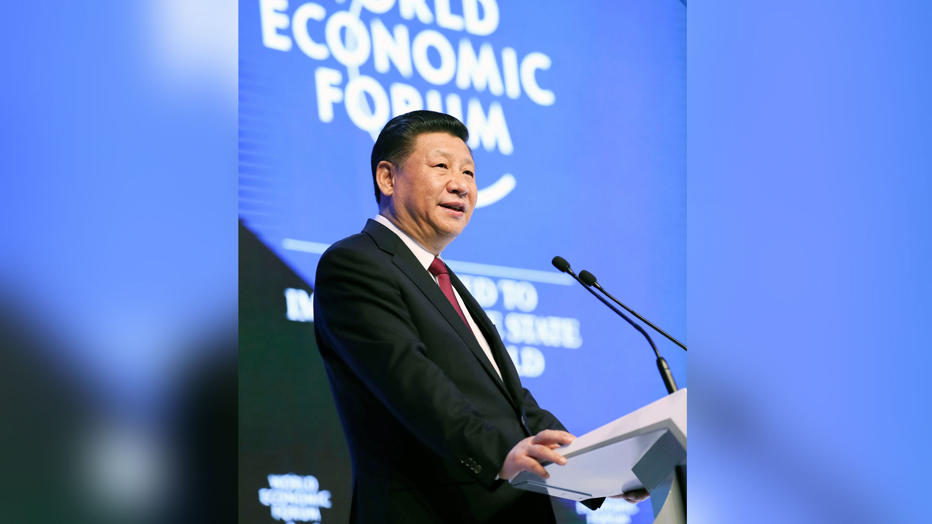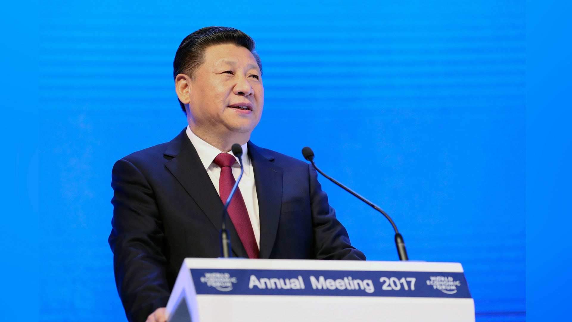 1月17日,國家主席習近平在瑞士達沃斯國際會議中心出席世界經濟論壇2017年年會開幕式,并發表題為《共擔時代責任共促全球發展》的主旨演講。 新華社記者 蘭紅光 攝2017-01-18