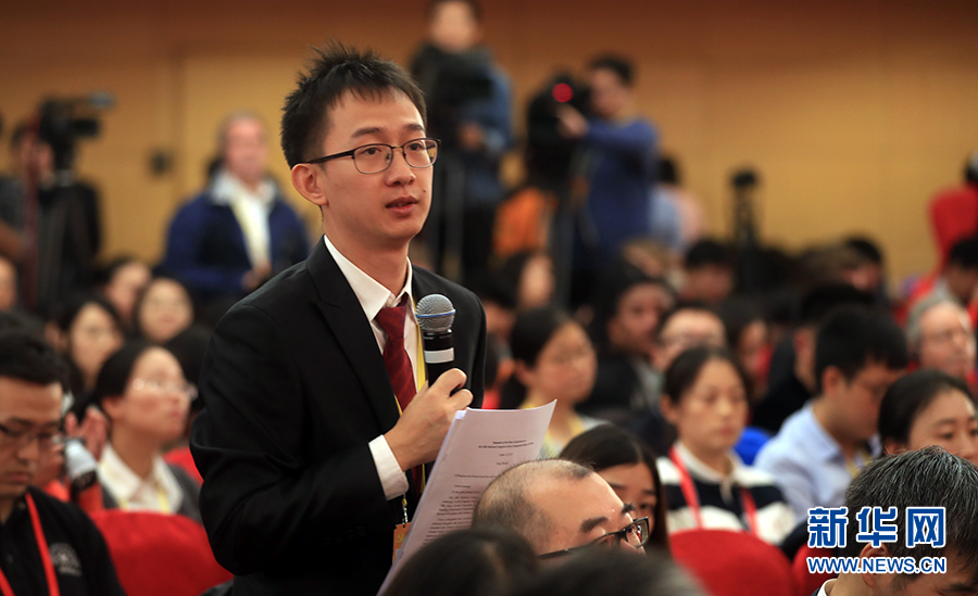 ??? 10月19日,十九大新聞中心舉行記者會(huì),邀請(qǐng)中紀(jì)委、中組部負(fù)責(zé)人介紹黨的建設(shè)和全面從嚴(yán)治黨相關(guān)情況。圖為澳門澳亞衛(wèi)視記者提問(wèn)。新華網(wǎng) 郝廣鵬攝