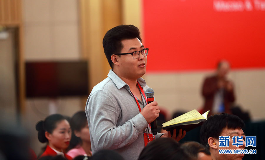 ??? 10月19日,十九大新聞中心舉辦集體采訪,邀請工信和通訊領域代表談走新型工業(yè)化道路。圖為中國質量報記者提問。新華網 郝廣鵬攝