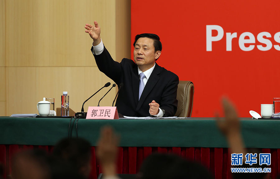 ??? 10月20日,十九大新聞中心舉行記者會,邀請中宣部、中央文明辦、文化部、新聞出版廣電總局相關(guān)負責(zé)人介紹加強思想道德和文化建設(shè)情況,并回答記者提問。圖為主持人郭衛(wèi)民。新華網(wǎng) 郝廣鵬 攝