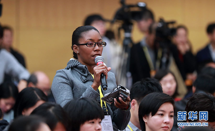 ??? 10月20日,十九大新聞中心舉行記者會,邀請中宣部、中央文明辦、文化部、新聞出版廣電總局相關負責人介紹加強思想道德和文化建設情況,并回答記者提問。圖為古巴拉美通訊社記者提問記者提問。新華網 郝廣鵬 攝