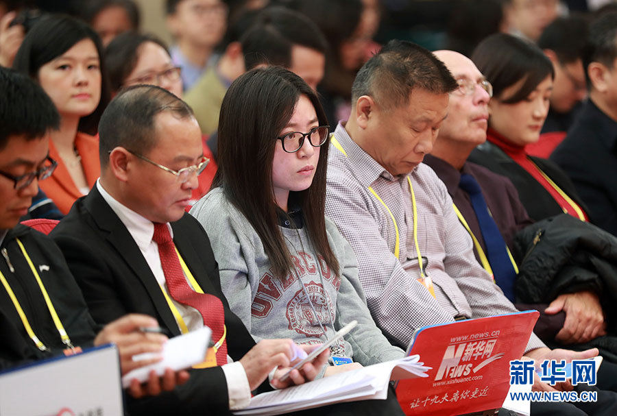 ??? 10月20日,十九大新聞中心舉行記者會,邀請中宣部、中央文明辦、文化部、新聞出版廣電總局相關負責人介紹加強思想道德和文化建設情況,并回答記者提問。圖為記者會現場。新華網 郝廣鵬 攝