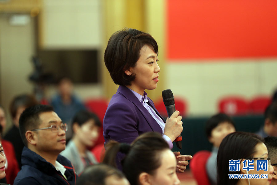 10月21日,十九大新聞中心舉辦集體采訪活動,主題為“農業科技創新”。圖為中央電視臺記者提問。新華網 郝廣鵬攝