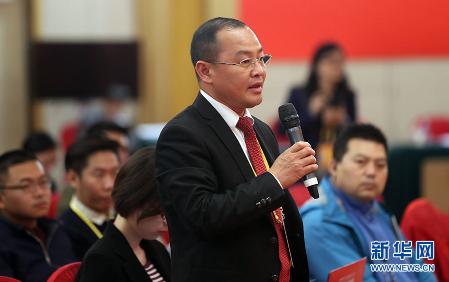 10月22日,十九大新聞中心在梅地亞中心二層新聞發布廳舉辦集體采訪活動,邀請教育領域代表談“教育綜合改革”。圖為美國全美電視臺記者提問。新華網 郝廣鵬攝