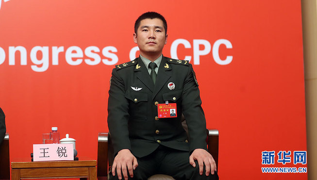 ?10月22日,十九大新聞中心在梅地亞中心二層新聞發(fā)布廳舉辦集體采訪活動,主題為“中國特色強軍之路邁出堅定步伐”。圖為陸軍第74集團軍某合成旅兩棲裝甲突擊車車長王銳。新華網(wǎng) 郝廣鵬攝